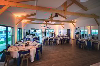 A l'orée du bois de pins, la salle La Salamandre vous propose 150m² à louer, avec tables et chaises de réception. L'espace de préparation est équipé d'un réfrigérateur professionnel et de plans de travail.